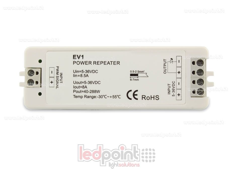 SYSTÈMES SKYDANCE CATALOGUE FAQ Amplificateur de signal tension constante, 5-36V, avec 1 canal de 8A. Si installé en serie ou en parallèle, il permet d'éteindre le signal sans limites.
