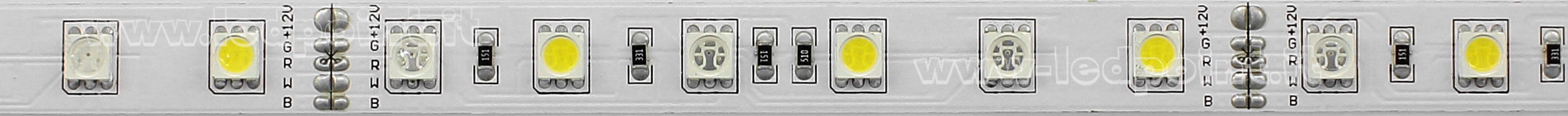 Ruban led équipé en utilisant les deux de la Honglitronic version HL-AF-5060H343W-3-S1-T1-HR1 et HL-AF-5060H271BU46FU. Ils sont équipé avec deux LED différents: une LED blanche pour un éclairage optimal et une LED RVB pour créer des effets de couleur. Ici c' est possible, avec l'installation d'une seule bande, avoir les deux fonctions. La température de la couleur du LED blanche a une fenêtre très étroite entre 4250-4500K pour une plus grande stabilité des couleurs sur les différents lots de production. Pour plusieurs d'informations Vous pouvez voir la fiche technique du Led (datasheet).Ce ruban LED est flexible et a la colle sur le dos pour une installation rapide aussi sur les surfaces courbes. Ses caractéristiques sont: