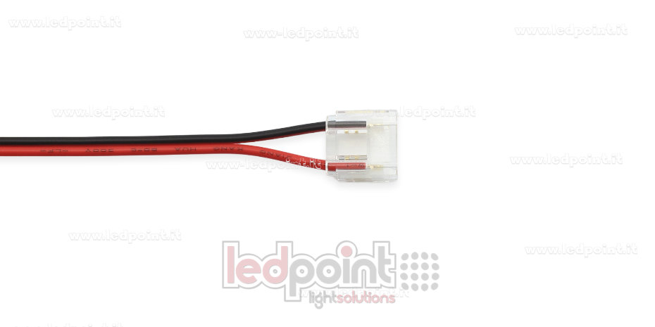 FAQ Connecteur avec câble de 10cm, pour rubans LED et COB de PCB 10mm, 2 broches, version réduite transparente.