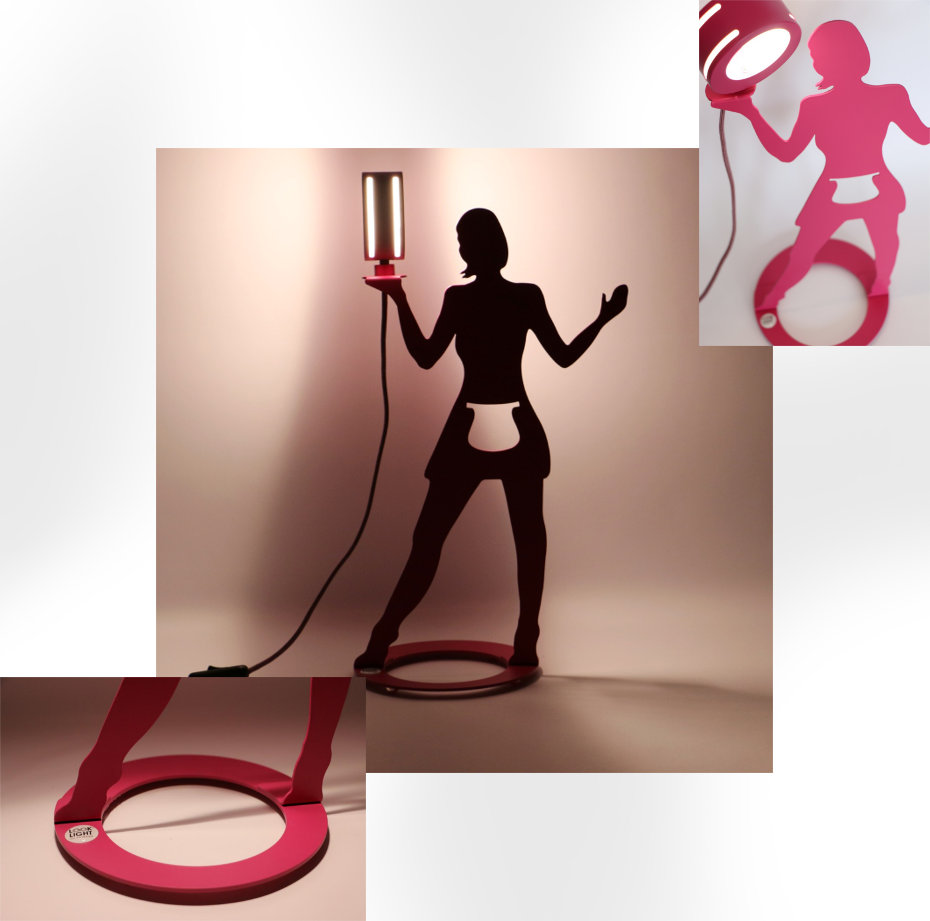 Lamp à poser orientable realisée en acier carburé coupé à laser, peint artisanalement avec vernis specials (ligne LUX) ouavec vernis en poudre (ligne ECO). Il y a la possibilité d'avoir le câble en tissu coloré et d'voir la couleur de la lumière Blanc naturel ou Blanc Chaud. On peut avoir aussi le portemanteau.