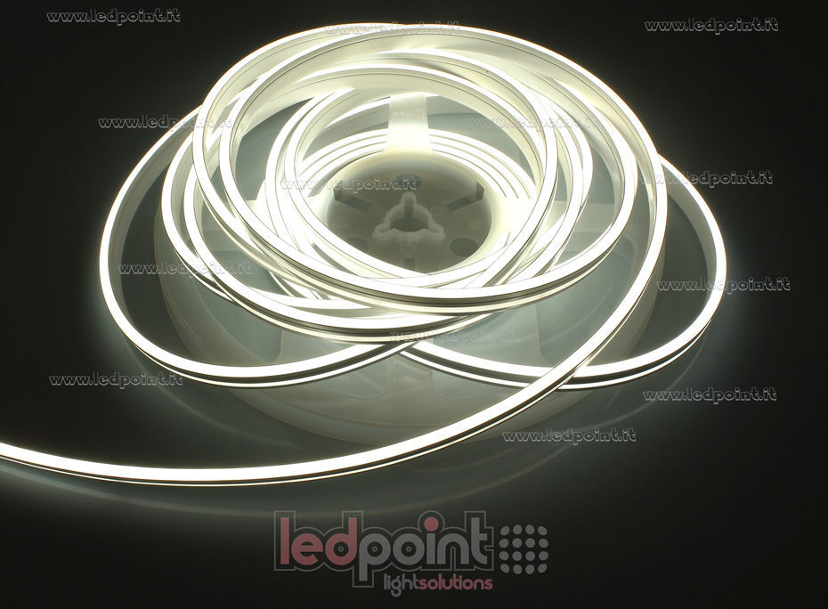 Le revêtement en silicone des LED Neon Flex garantit une durabilité remarquable du produit tout en assurant une résistance exceptionnelle aux rayons UV et une dissipation de chaleur plus efficace. Particulièrement adaptés aux applications extérieures, les LED Neon Flex sont conçus pour résister aux intempéries, sans jaunir ni subir d'altérations dues à une exposition prolongée au soleil. Il va de soi que, en moyenne, l'utilisation de LED Neon Flex en silicone est préférée pour les projets d'éclairage de haute qualité par rapport aux alternatives en PVC.