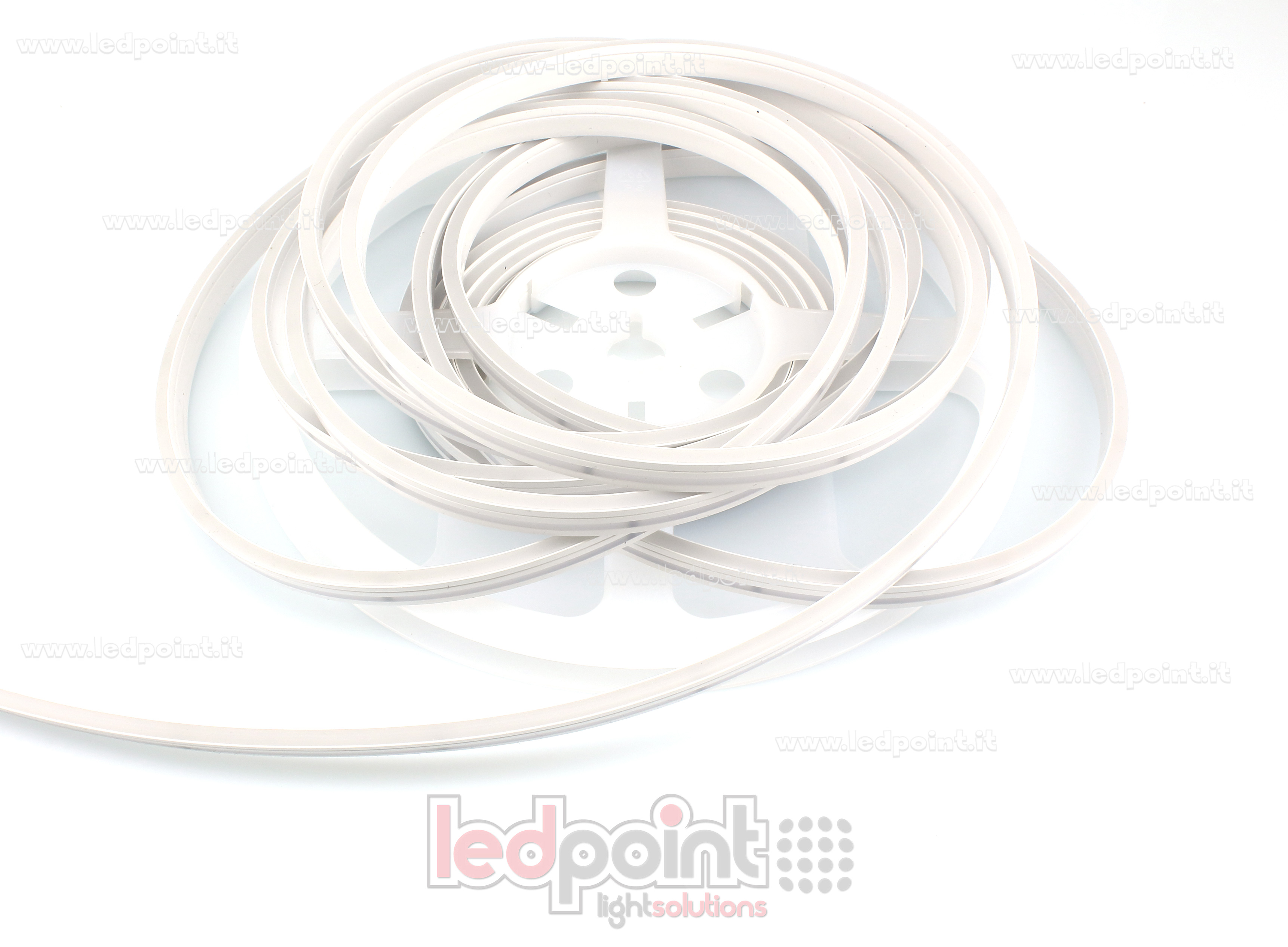 Tube LED flexible en silicone extrudé avec ruban monocouleur. La classe énergétique se réfère à la source lumineuse contenue à l'intérieur.