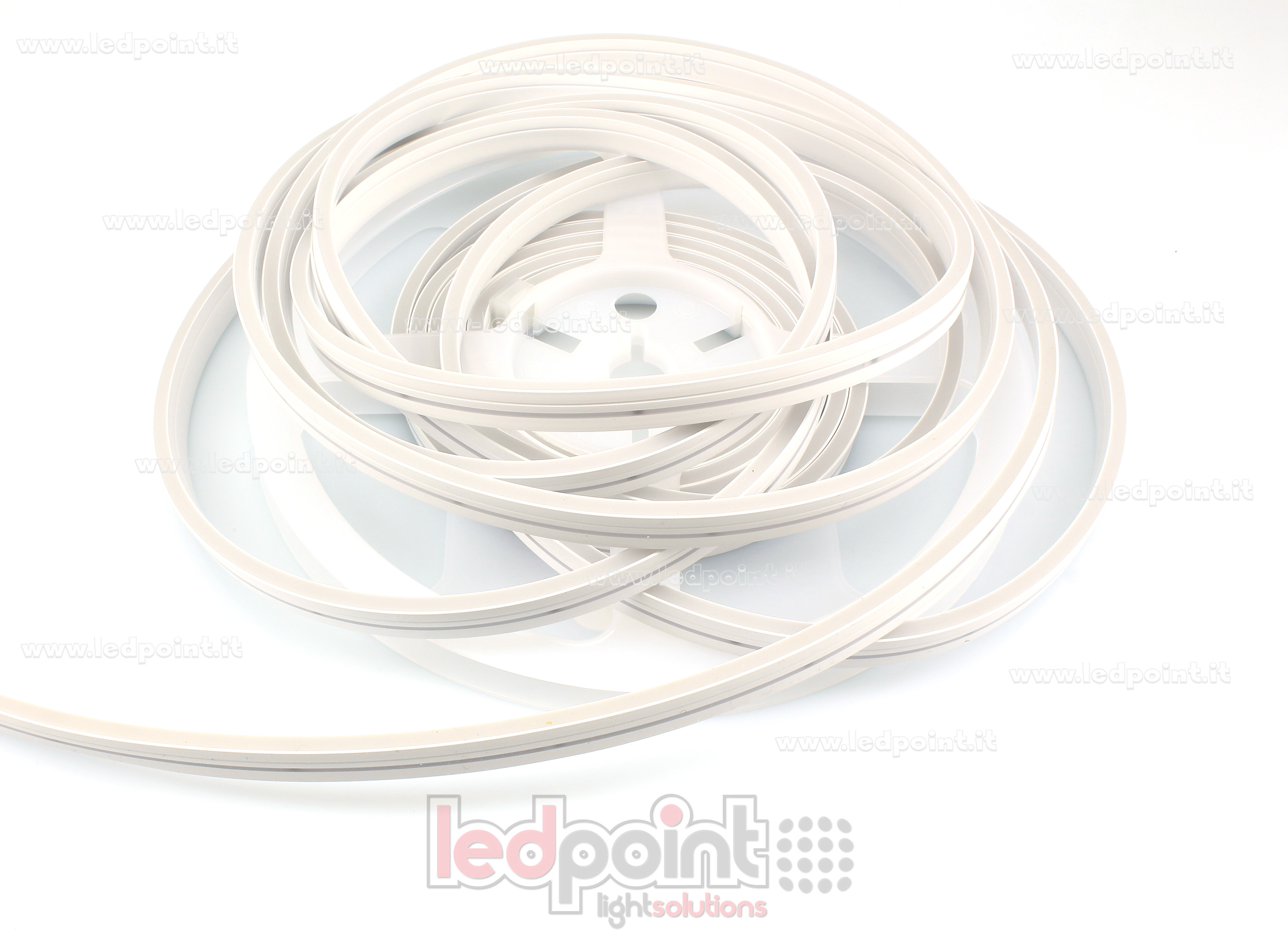 Tube LED flexible en silicone extrudé avec ruban monocouleur. La classe énergétique se réfère à la source lumineuse contenue à l'intérieur.