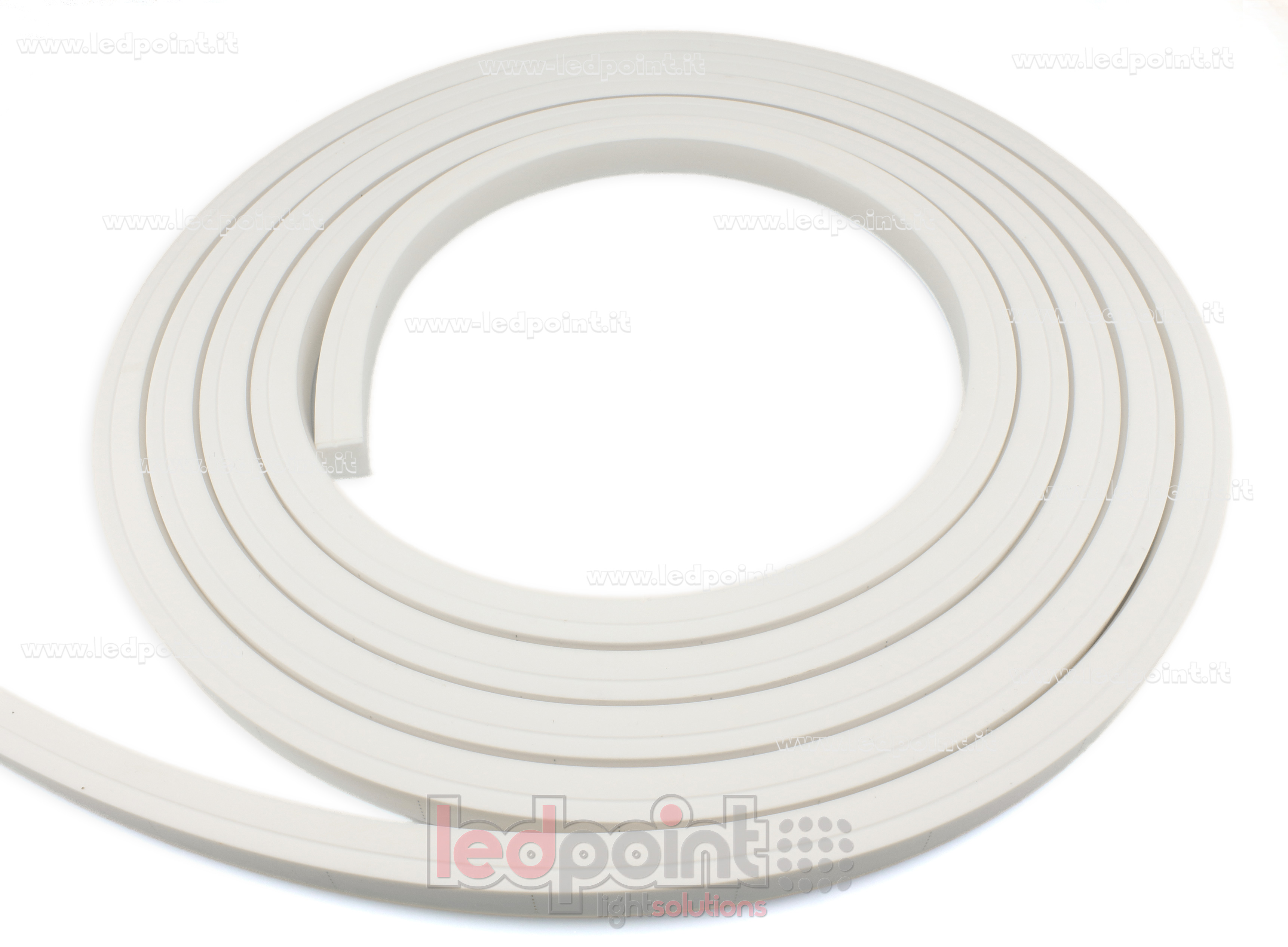 Tube LED flexible en matériel en silicone extrudé avec ruban 3000K. Nos neon flex sont fabriqués entièrement en polyuréthane, un revêtement spécial étanche (IP67) conçu pour les applications intensives. Il est très durable, il n'a pas tendance à se fissurer ou a se détériorer et sa couleur ne s'altère pas avec le temps car il est en mesure de résister aux rayons UV, à l'eau salée et aux solvants. C'est un matériau robuste et extrêmement flexible qui garantit une grande fiabilité au fil du temps.