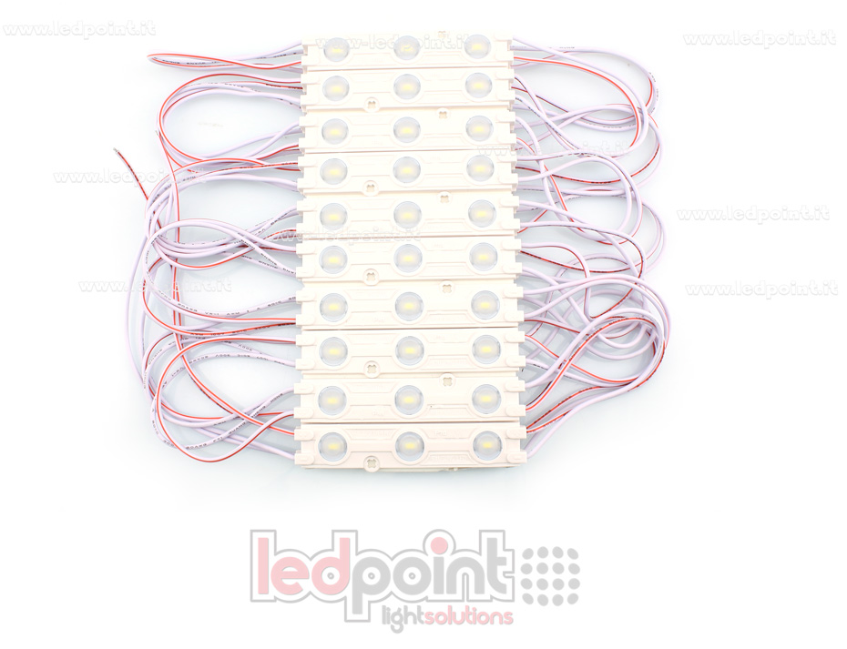 Module 3 led 5630, 1,44W 12V, blanc froid 6000-6500K, IP65 avec lentille 160°