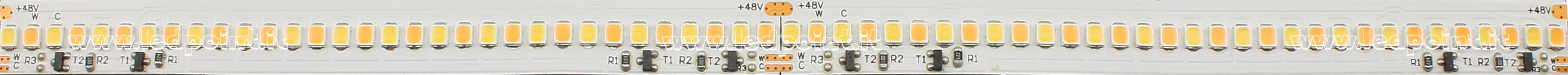 Ruban led construit en utilisant un led blanc chaud chip circadien violet et un led blanc froid à rendement chromatique élevé avec un spectre similaire à la lumière du soleil. La température de couleur a une fenêtre entre 2700-5000K pour assurer une plus grande stabilité de couleur sur différents lots de production.