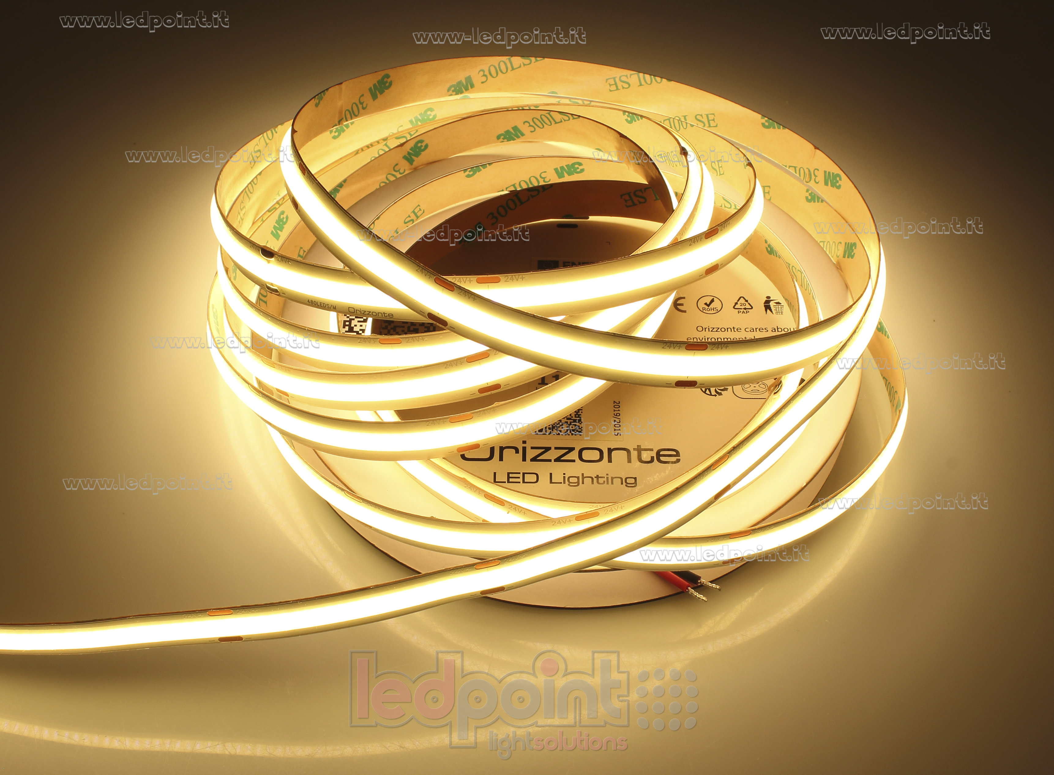 Ruban led flexible doté à l'arrière d'un adhésif pour une installation rapide aussi sur les surfaces courbes. Grâce au revêtement posé sur les LED, le ruban COB permet de créer des lignes de lumière sans effet pointillé avec un angle de diffusion.