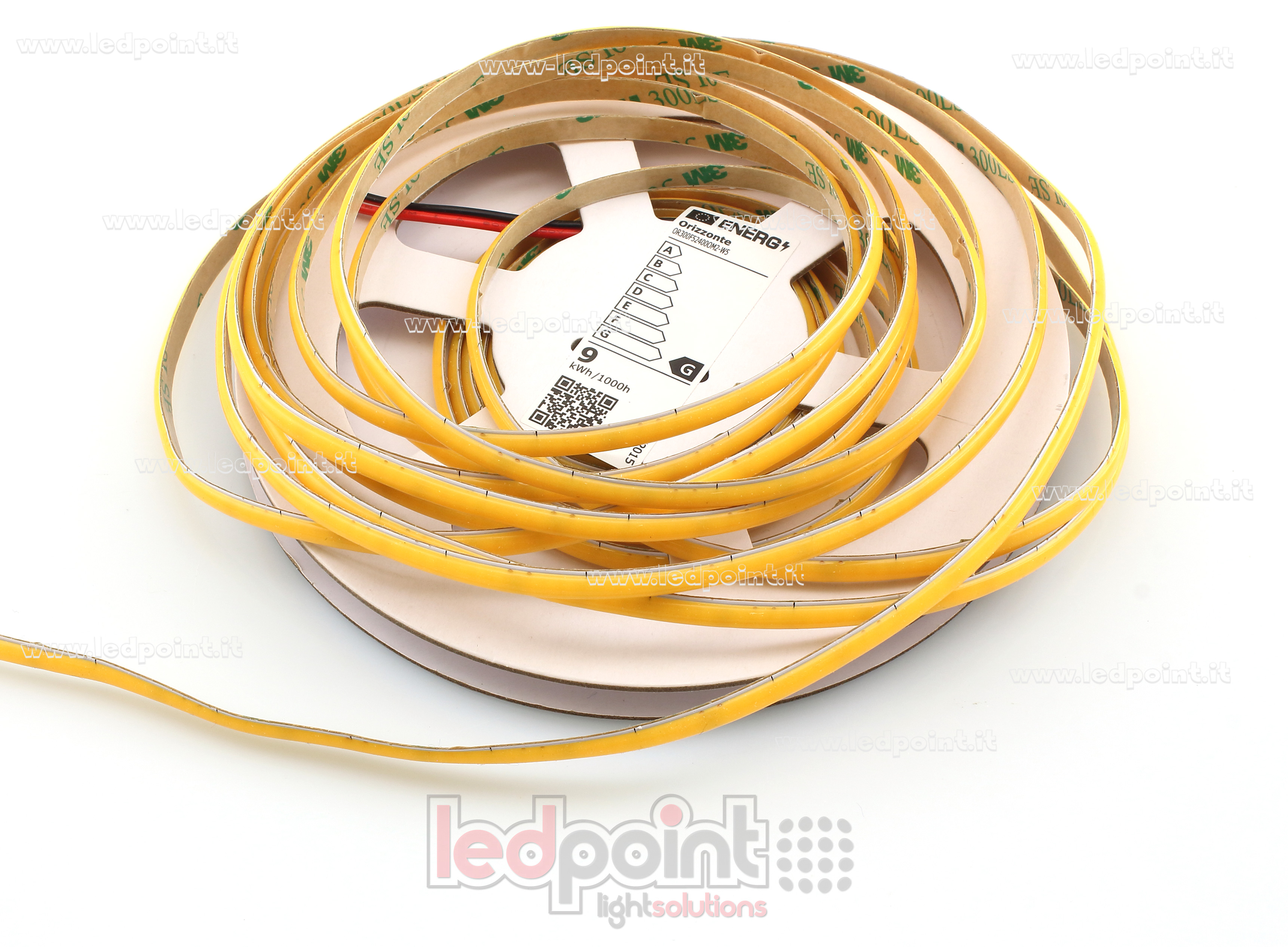 Ruban led flexible doté à l'arrière d'un adhésif pour une installation rapide aussi sur les surfaces courbes. Grâce au revêtement posé sur les LED, le ruban COB permet de créer des lignes de lumière sans effet pointillé avec un angle de diffusion.
