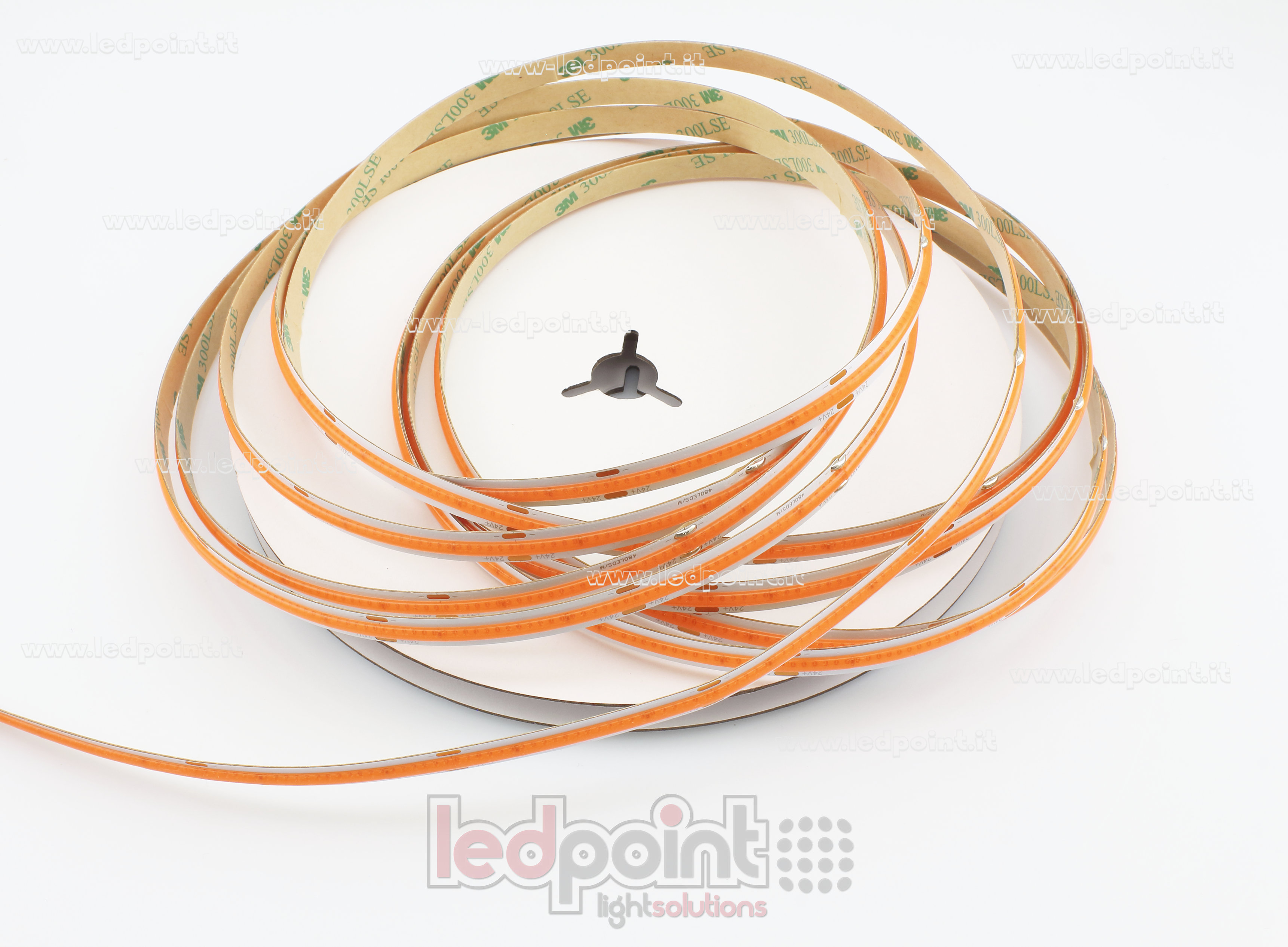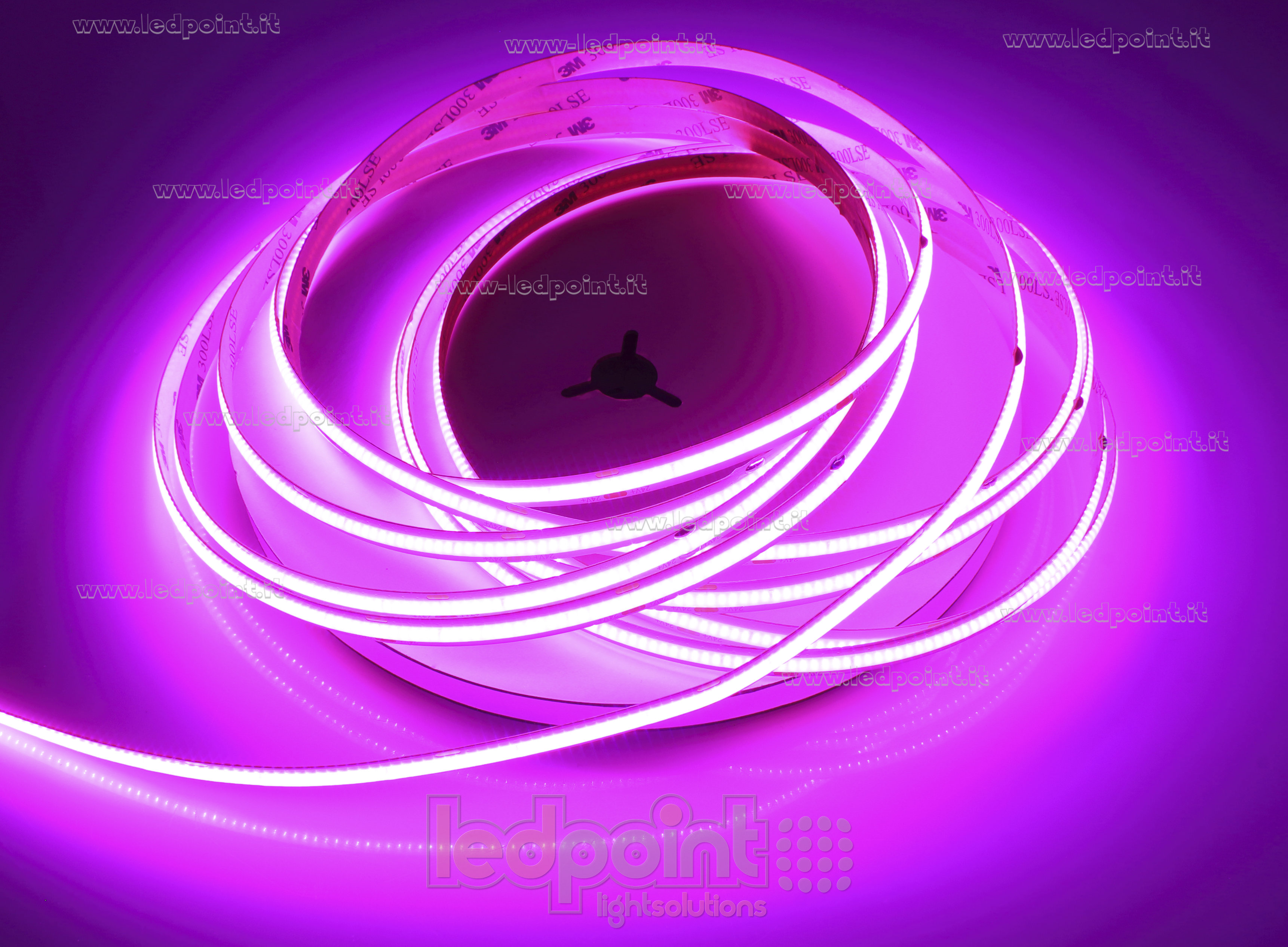 Ruban led flexible doté à l'arrière d'un adhésif pour une installation rapide aussi sur les surfaces courbes. Grâce au revêtement posé sur les LED, le ruban COB permet de créer des lignes de lumière sans effet pointillé avec un angle de diffusion.